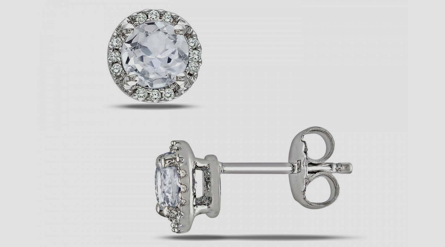 These alluring studs offer 6.5-7mm freshwater white pearls and round white precious stones set in 10-kara…